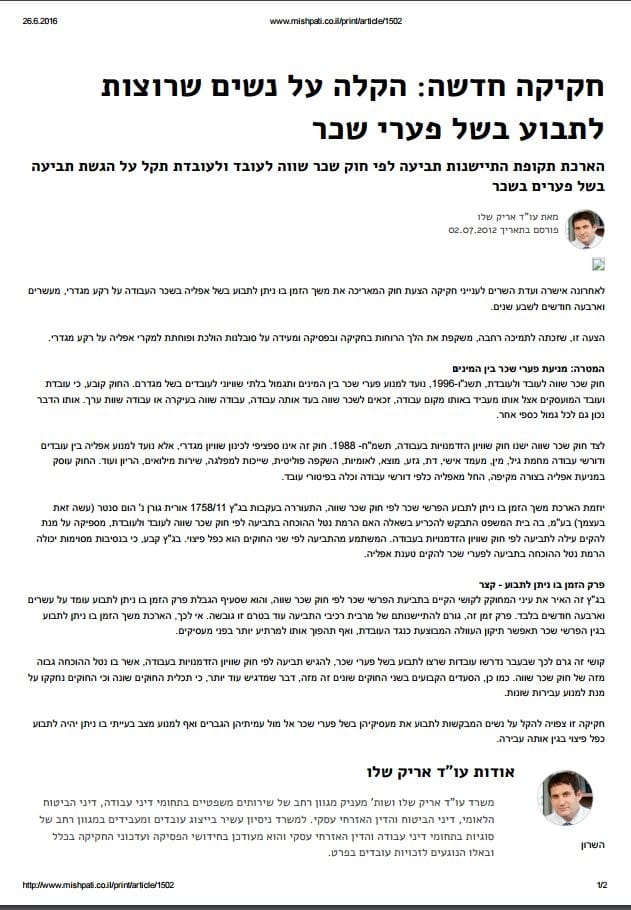 עו"ד אריק שלו במאמר דעה לאתר משפטי. פורסם ב: 20